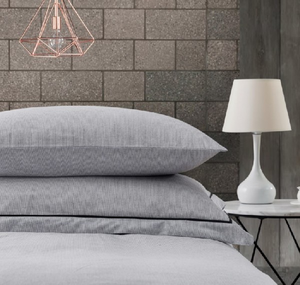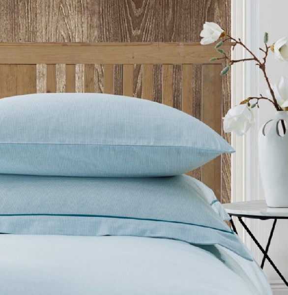Striped pillow case pairs to compliment Behrens Natural Check range of duvet covers, this pillow cases are 100% cotton with  a small wooden button detail.