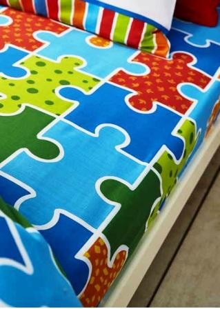 A bright printed duvet set with a contrasting jigsaw patterned reverse from Catherine Lansfield.